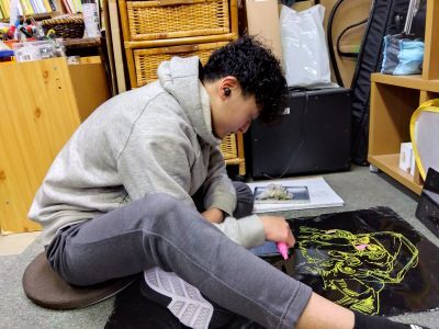 次回の美術展に向けてやってるらしい制作中の作品 今度は自画像だって 肩にはもうお星さまになってしまっ...