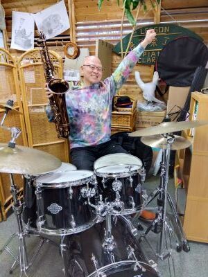 電子のサックスを持ち込み