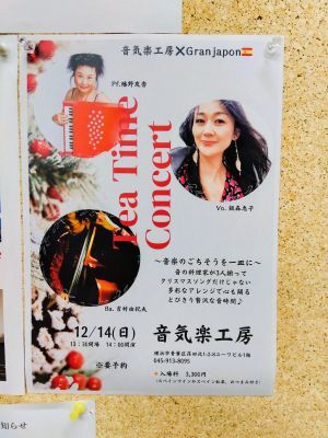 来月12月14日はTea Time Concert 今回は飯森先生と吉村先生とChristmas ~...